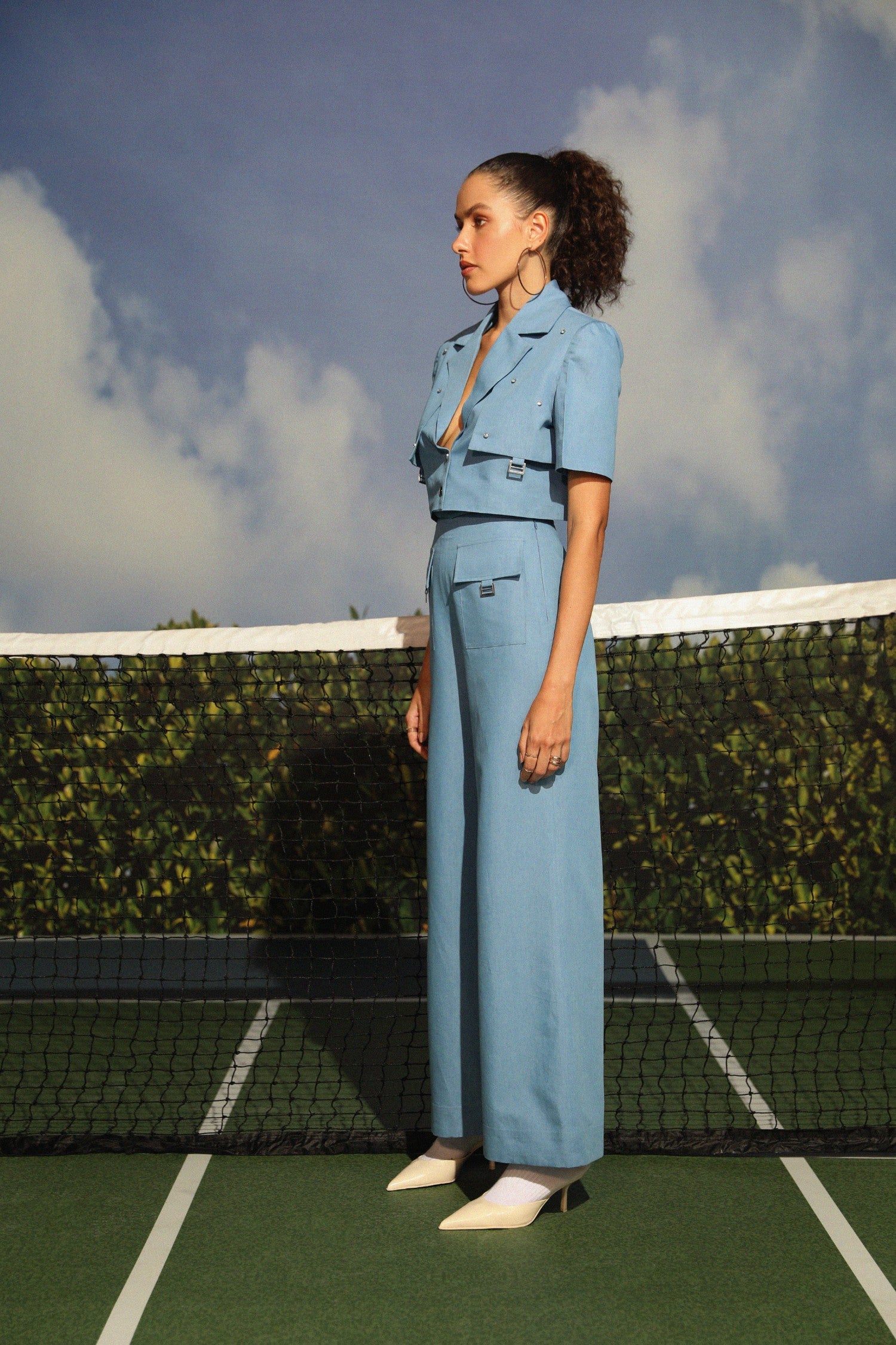 The Elena coord set is a standout design featuring bold castle and buckle details that give it an edgy, avant-garde vibe. The set includes a stylish top and matching bottoms, with the intricate castle motifs and buckle accents adding a unique, fashion forward twist.